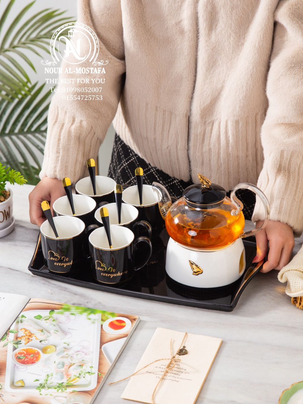 طقم شاي بالصنيه والمعالق 16 قطعه